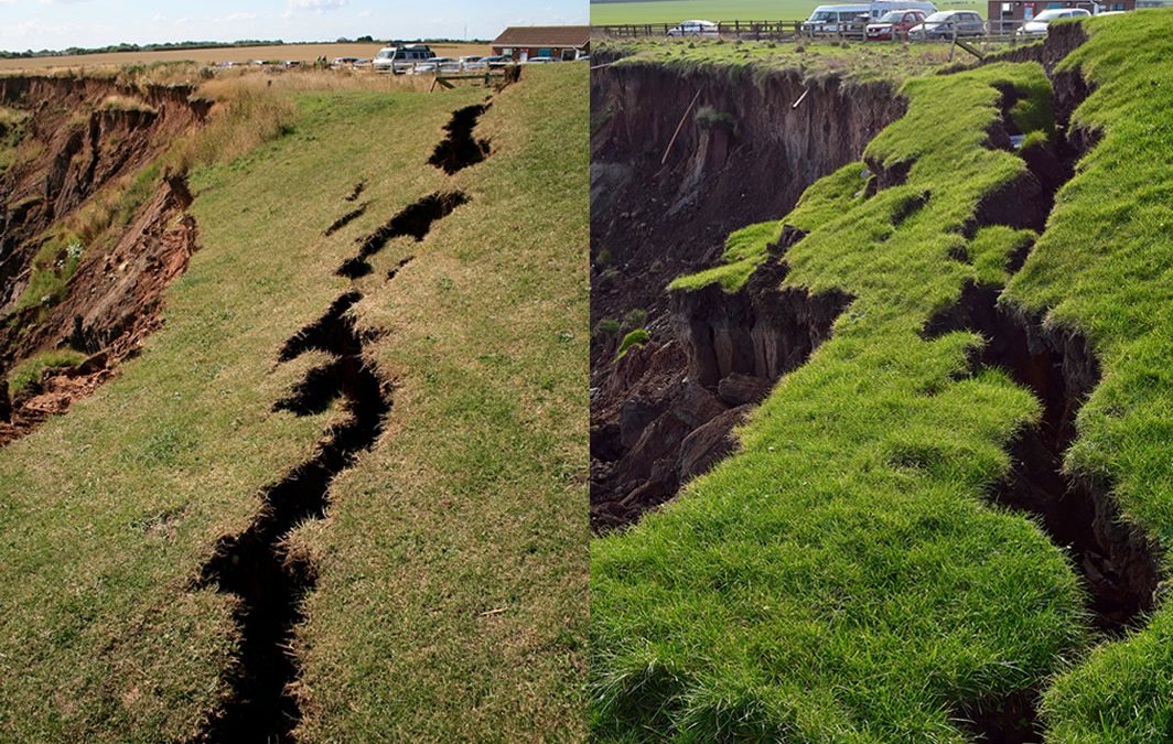 Erosion at Mappleton in August 2015 and February 2016.